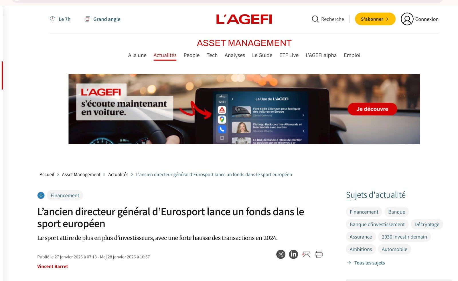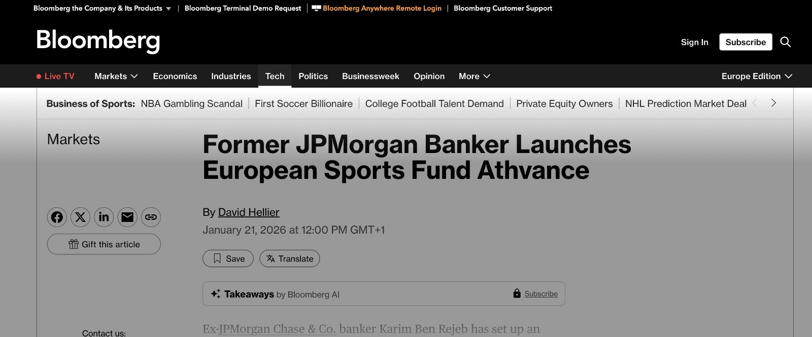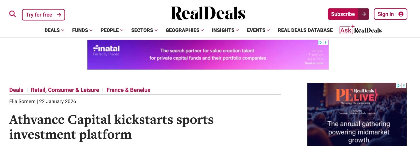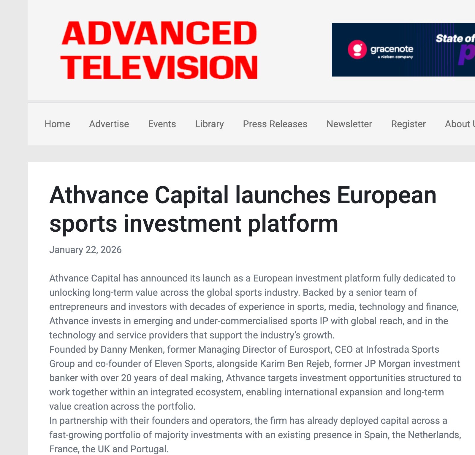 A roundup of media coverage following the launch of Athvance Capital as Europe's dedicated sports investment platform.